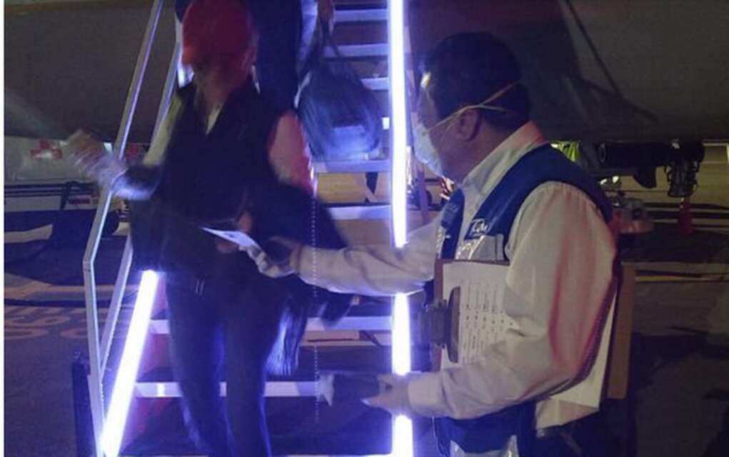 Ante la expansión de casos en Estados Unidos, que suma 250 contagios y 14 fallecimientos, Sanidad Internacional recibe a los viajeros del vuelo directo de Houston en la puerta del mismo avión desarrollando las medidas ya señaladas.