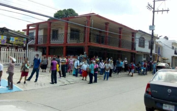 Las oficinas de Sebien en Altamira es un espacio muy reducido y se ubican a un costado de la calle Vicente Guerrero en la zona centro de la ciudad. Además, es notorio que entre los asistentes no se respeta la sana distancia para evitar contagios por Covid-19.