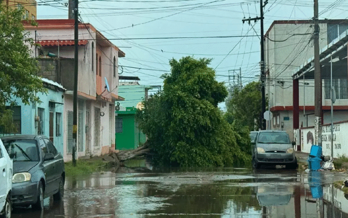 Tampico.- Las lluvias aisladas registradas la mañana de este miércoles provocaron la caída de un árbol de gran magnitud en la colonia Guadalupe Mainero, además de dejar sin suministro eléctrico a diversas colonias de la ciudad, lo que afectó tanto a viviendas como a establecimientos comerciales.