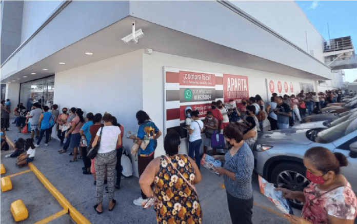 Tampico.- Desde las 7 de la mañana comenzó a formarse la fila de clientes para ingresar a la nueva sucursal de una tienda departamental que se inauguró hoy en la avenida Ejército Mexicano, en Tampico. La mayoría eran padres en busca de ofertas de útiles escolares.
