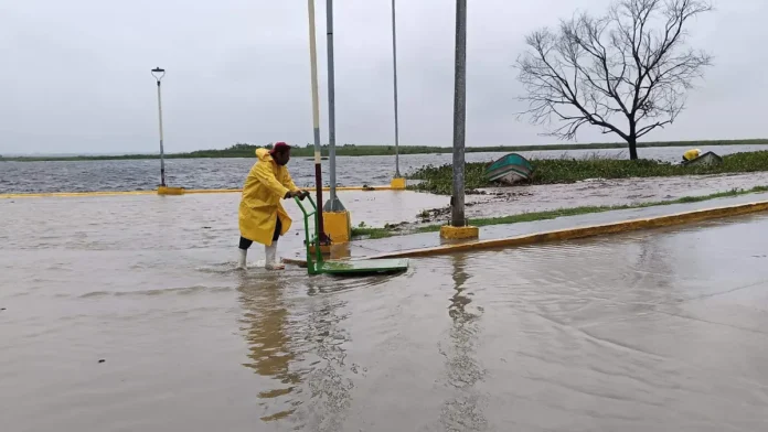 Destacó que esta situación ha provocado inundaciones de tramos del parque, así como del muelle del mercado de pescados y mariscos, lo que obligó a suspender la actividad comercial.