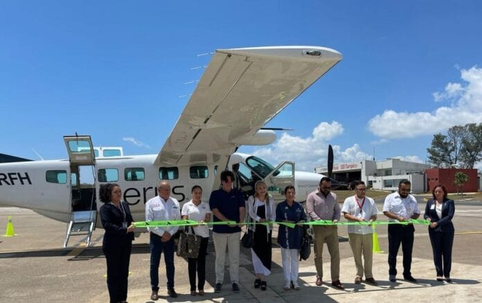 Tampico, Tamaulipas. – El secretario de Turismo de Tamaulipas, Benjamín Hernández Rodríguez y directivos de la aerolínea Aerus inauguraron la nueva ruta Tampico-Reynosa-Veracruz, cuyos días de operación serán lunes, martes, miércoles, jueves y viernes, con dos vuelos y sábado y domingo, con un vuelo.