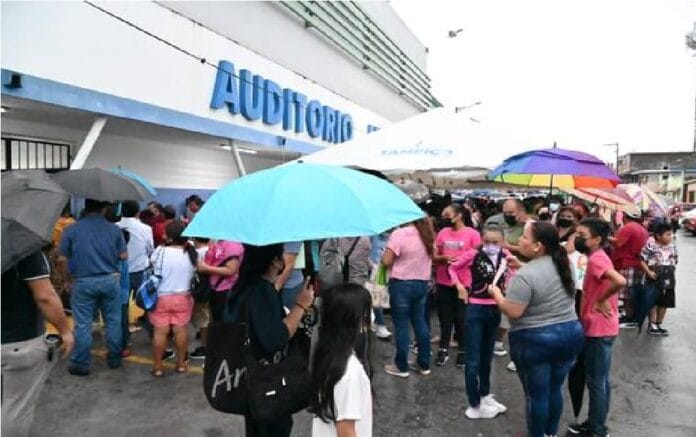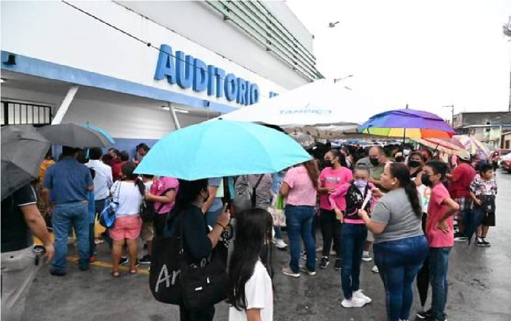 Situación que provocó que los padres de familia y tutores se molestaran por la mala logística y exigieran que abrieran las instalaciones del auditorio municipal de Tampico, a la par de que un pequeño sector aprovechaban la lluvia para tratar de meterse a agandallar un espacio y evitar perder el tiempo.