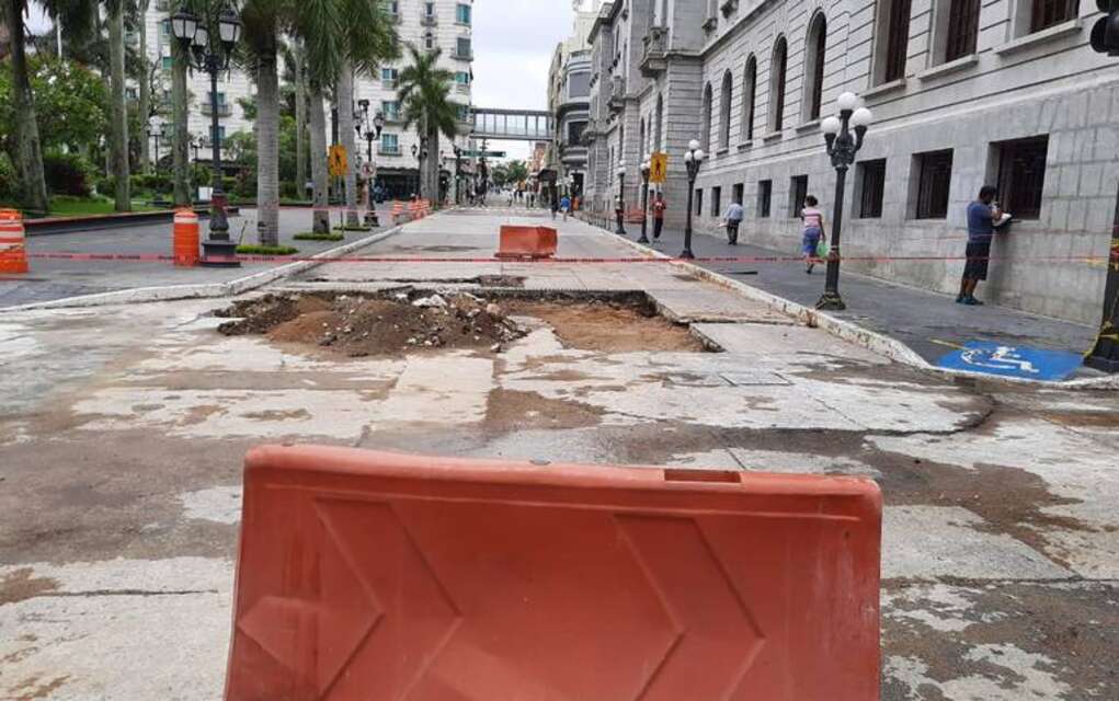 Un tramo de la Calle Cristóbal Colón entre Altamira y Díaz Mirón sigue cerrado a la circulación vehicular, debido a que no ha sido reparado completamente el socavón que se formó frente a la Presidencia Municipal.