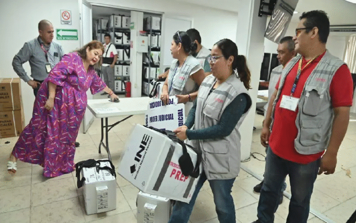 Durante estos cinco días, el personal del Instituto Nacional Electoral (INE) y del Instituto Electoral de Tamaulipas (IETAM) trabaja de manera coordinada para garantizar que cada paquete llegue completo y a tiempo, asegurando que las casillas estén listas para la jornada electoral del próximo 1 de junio.