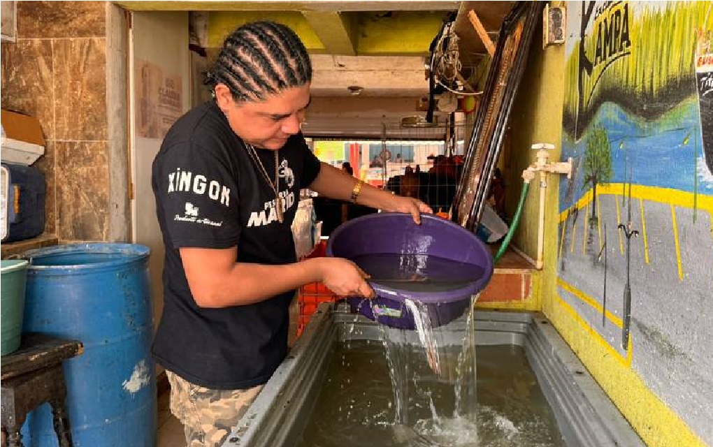 Ante la amenaza de la sequía, comerciantes del mercado de pescados y mariscos “La Puntillita” están tomando medidas preventivas para garantizar el suministro de agua. Así que se preparan para afrontar lo que consideran será una extrema temporada, a través de la compra de tinacos para contar con reserva de este vital líquido.